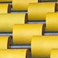 konveyör şasisi üzerine düzgün aralıklarla yerleştirilmiş rulolar